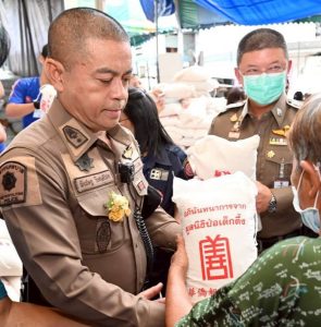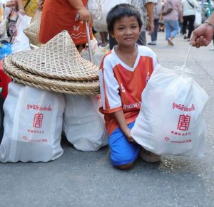 ซึ่งในปีนี้จัดเพิ่มขึ้นกว่าปีที่ผ่านมาทั้งชุดเครื่องอุปโภคบริโภคและค่าพาหนะ เพื่อเป็นการช่วยเหลือผู้ยากไร้ สอดรับกับปริมาณผู้ที่มารอรับและค่าครองชีพในปัจจุบันที่เพิ่มขึ้น โดยสิ่งของที่แจกประกอบด้วย ข้าวสาร ปลากระป๋อง บะหมี่กึ่งสำเร็จรูป น้ำปลา น้ำมันพืช ขนม เสื้อผ้า รองเท้าแตะฟองน้ำ ฯลฯ บรรจุถุงผ้ามูลนิธิฯ