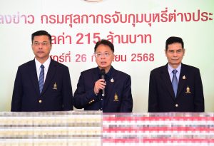 ศุลกากรแถลงผลการจับกุมบุหรี่ต่างประเทศละเมิfเครื่องหมายการค้า มูลค่าความเสียหายทางเศรษฐกิจ 215 ล้านบาท