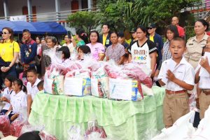 (ช่วงบ่าย) มอบถุงยังชีพให้ชาวบ้านยากจน อ.โนนสะอาดจ.อุดรธานี พร้อมมอบอุปกรณ์การศึกษาการกีฬา และทุนการศึกษา ห้องน้ำรวมให้นักเรียนโรงเรียน ตชด.ไปรษณีย์ไทย(อ.โนนสะอาด จ.อุดรธานี) ถุงยังชีพ รวม 100 ชุด เครื่องตัดหญ้าให้โรงเรียน ตชด. 1 ชุด