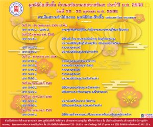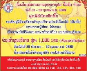 นอกจากนี้ ระหว่างวันที่ 19 – 30 ตุลาคม 68 ขอเชิญชวนประชาชนชมอุปรากรจีน (งิ้ว) ที่คณะลูกศิษย์หลวงปู่ไต้ฮงจัดถวายรวม 12 คืน ณ บริเวณฝั่งสำนักงาน มูลนิธิป่อเต็กตึ๊ง พลับพลาไชย กรุงเทพฯ