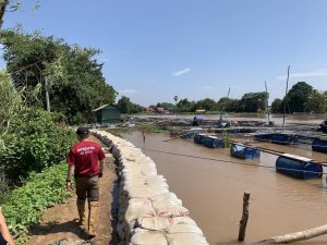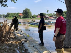 จากนั้นได้ลงพื้นที่ตรวจดูแนวคันดินกั้นน้ำบริเวณหมู่ที่ 5 ตำบลโผงเผง พร้อมพูดคุยให้กำลังใจเจ้าหน้าที่ทหารที่กำลังปฏิบัติหน้าที่ในการเฝ้าระวังและเสริมแนวป้องกันน้ำอย่างต่อเนื่อง