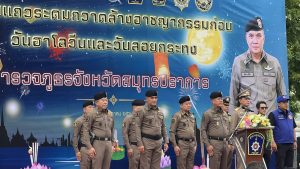 ผช.ผบ.ตร. ร่วมกับผู้ว่าฯสมุทรปราการ ปล่อยแถวกำลังเจ้าหน้าที่ตำวรวจ สังกัด ภ.จว.และฝ่ายปกครอง กวาดล้างอาชญากรรมช่วงวันฮาโลวีน-ลอยกระทง