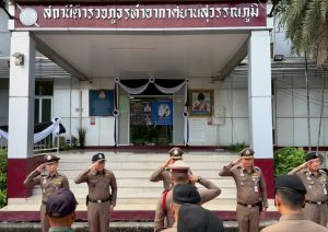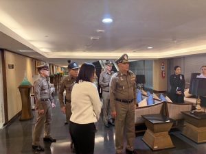 โดยมี พ.ต.อ.ทองรชฎ เหรียญสุวงษ์ ผกก.สภ.ท่าอากาศยานสุวรรณภูมิ พร้อมข้าราชการตำรวจ สภ.ท่าอากาศยานสุวรรณภูมิ ให้การต้อนรับ