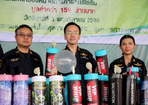นอกจากนี้ เมื่อวันที่ 29 ตุลาคม 2568 เจ้าหน้าที่ตรวจสอบสินค้านำเข้าจากประเทศจีน พบก๊าซไนตรัสออกไซด์ (ก๊าซหัวเราะ) จำนวน 2,670 ชิ้น มูลค่ากว่า 44 ล้านบาท ไม่ได้สำแดงมาในใบขนสินค้า ก๊าซดังกล่าวเป็นยาที่ใช้ตามโรงพยาบาลสำหรับดมสลบก่อนผ่าตัดหรือถอนฟัน เพื่อลดอาการปวด ออกฤทธิ์ และหมดฤทธิ์เร็ว หากสูดดมเข้าไปมากจะทำให้คลื่นไส้ อาเจียน มึนงง และหมดสติ และหากใช้ต่อเนื่องเป็นเวลานานอาจทำให้เส้นประสาทส่วนปลายเสื่อม เหน็บชาบริเวณนิ้วมือหรือนิ้วเท้า และอาจถึงขั้นเสียชีวิต กรณีนี้เป็นความผิดฐานนำของต้องกำกัดเข้ามาในราชอาณาจักร โดยไม่ได้รับอนุญาต อันเป็นความผิดตามมาตรา 202 244 252 166 และ 167 แห่ง พ.ร.บ. ศุลกากร พ.ศ. 2560 ประกอบกับ พ.ร.บ. ยา พ.ศ. 2510