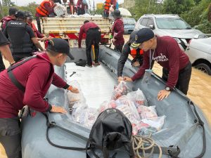 เมื่อวันที่ 25 พ.ย. 68 เวลา 12.30 – 22.30 น. พล.ต.ต.เศรษฐสิริ นิพภยะ ผบก.รน. พร้อมด้วย พ.ต.อ.ราม รสหอม รอง ผบก.รน., พ.ต.อ.วันพิชิต วัฒนศักดิ์มณฑา ผกก.7 บก.รน., พ.ต.อ.สาธร สุขส่ง ผบ.เรือ(สบ 4) กรต.บก.รน. และข้าราชการตำรวจในสังกัด กก.2 บก.รน.,ส.รน.1 กก.7 บก.รน. ลงพื้นที่ ช่วยเหลือ ค้นหาและอพยพผู้ประสพภัยน้ำท่วมในพื้นที่ ต.คลองแห อ.หาดใหญ่ จ.สงขลา ซึ่งสามารถเข้าถึงได้ ณ ตอนนี้ และได้มอบของบริโภค อาทิเช่น อาหาร เครื่องดื่ม ผลไม้ และอื่นๆ ให้แก่ประชาชนที่ได้รับความเดือดร้อนครั้งนี้
