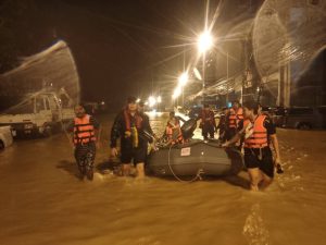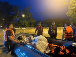 ผู้การ”นิก” นำทัพตำรวจน้ำลงเรือยางลุยน้ำช่วยเหลือชาวบ้าน ที่ประสพภัยสงขลา