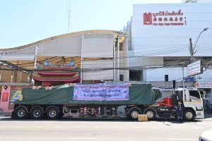 พร้อมคณะผู้บริหาร พนักงาน และอาสาสมัครช่วยกันลำเลียงเครื่องอุปโภคบริโภคและสิ่งของเครื่องใช้จำเป็นต่างๆ ที่ได้รับมอบจากสมาคมวิเทศพาณิชย์ไทย-จีนและผู้มีจิตศรัทธาที่ต้องการช่วยเหลือผู้ประสบอุทกภัย โดยลำเลียงขึ้นรถเทรลเลอร์ และรถบรรทุก จำนวน 4 คัน ออกเดินทางไปยัง อำเภอหาดใหญ้ จังหวัดสงขลา