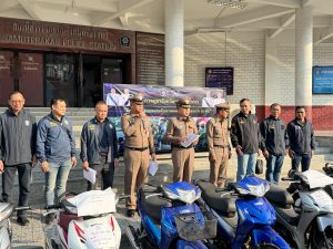 ผู้การฯ สมุทรปราการ แถลงข่าวผลการจับกุมกลุ่มเครือข่ายผู้ต้องหาร่วมกันลักทรัพย์รถจักรยานยนต์ในเขตพื้นที่ จ.สมุทรปราการ ภายใต้การอำนวยการของ พล.ต.ต.ภูมินทร์ สิงหสุต ผบก.ภ.จว.สมุทรปราการ