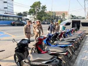 4.รวมของกลางที่ตรวจยึดได้เป็นรถรถจักรยานยนต์ รวมจำนวนทั้งสิ้น 20 คัน รถยนต์นั่งส่วนบุคคลเกิน 7 คน (รถตู้) จำนวน 1 คัน