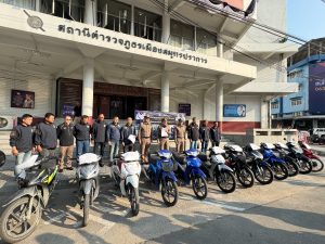 เมื่อวันที่ 1 พ.ย. 2568 เวลาประมาณ 20.00 น. สภ.สำโรงเหนือ ได้รับแจ้งจากพลเมืองดีว่าที่บ้านเลขที่ 170 ม.8 ซ.มังกร-นาคดี 6 ถ.เทพารักษ์ ต.เทพารักษ์ อ.เมืองสมุทรปราการ จ.สมุทรปราการ มีหญิงไทยนำรถจักรยานยนต์มาฝากจอดไว้จำนวน 8 คัน ต่อมา บุคคลดังกล่าวได้นำรถยนต์กระบะตู้ทึบมาเพื่อขนรถจักรยานยนต์ทั้ง 8 คันดังกล่าวไป แต่รถจักรยานยนต์ทั้งหมดไม่ติดแผ่นป้ายทะเบียน และมีลักษณะต้องสงสัยว่าอาจเป็นรถที่ใช้ หรือได้มาจากกระทำความผิด
