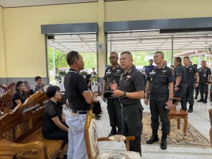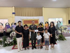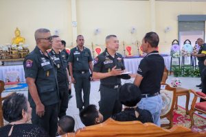 ผบ.ตร. ได้มอบหมายให้ พล.ต.ท. รุ่งโรจน์ ฐากูรปุณยสิริ ผู้บัญชาการตำรวจตระเวนชายแดน เดินทางเข้าเยี่ยมและให้กำลังใจครอบครัว ด.ต.สังเวียนฯ ที่วัดนาหว้า ตำบลฉาง อำเภอนาทวี จังหวัดสงขลา โดยกำชับให้หน่วยงานที่เกี่ยวข้องดูแลและให้ความช่วยเหลือครอบครัวอย่างเต็มที่ในทุกด้าน ทั้งด้านสวัสดิการ สิทธิประโยชน์ และการเยียวยาตามระเบียบของทางราชการ เพื่อบรรเทาความสูญเสียและสร้างขวัญกำลังใจแก่ครอบครัวกำลังพล