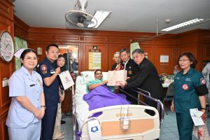 มูลนิธิป่อเต็กตึ๊ง นำกระเช้าเข้าเยี่ยมเยียน พร้อมมอบเงินปลอบขวัญให้กำลังใจแก่ทหารที่ได้รับบาดเจ็บจากเหตุปะทะชายแดนไทย-กัมพูชา ณ โรงพยาบาลพระมงกุฎเกล้า กรุงเทพฯ