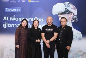 กรุงเทพฯ – มูลนิธิเพื่อการพัฒนาดิจิทัล (Digital Development Foundation: DDF) สมาคมอุตสาหกรรมซอฟต์แวร์ไทย (ATSI) และบริษัท ไทรแองเกิ้ลซอฟท์ จำกัด (TGS) ร่วมกับ บริษัท ไมโครซอฟท์ (ประเทศไทย) จำกัด และเครือข่ายพันธมิตรภาครัฐและเอกชน เปิดตัวโครงการ AI เพื่อแรงงานไทย สู่โอกาสใหม่ในการทำงาน อย่างเป็นทางการ ภายใต้คอนเซ็ปต์ “Equipping at-risk workers with essential AI skills to improve employability and economic resilience” เพื่อเสริมสร้างศักยภาพแรงงานไทยด้วยทักษะด้านปัญญาประดิษฐ์ (AI) รองรับการเปลี่ยนแปลงของตลาดแรงงานในยุคดิจิทัล