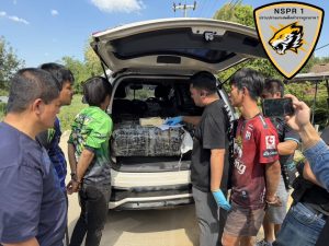 จนท.ตร. และจนท.ทหาร ขกท.ศปก.นสศ. จึงได้เฝ้าสะกดรอยติดตาม จนกระทั่งสามารถจับกุม MR.LATTANAXAY(ขับรถลำเลียงยาเสพติด) และนายชัชวาลหรือริท (ขับรถสำรวจเส้นทาง) ได้พร้อมของกลางยาเสพติดจำนวน