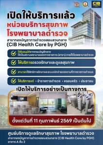 เมื่อวันที่ 28 มกราคม 2569 ที่ รพ.ตร. พล.ต.ท.ไพบูลย์ เจียมอนุกูลกิจ รักษาราชการแทนนายแพทย์ใหญ่ (สบ 8) โรงพยาบาลตำรวจ เปิดเผยว่าจากนโยบายและข้อสั่งการของ พล.ต.อ.กิตติ์รัฐ พันธุ์เพ็ชร์ ผบ.ตร.และ พล.ต.อ.กรไชย คล้ายคลึง รอง ผบ.ตร.(บร.)ให้โรงพยาบาลตำรวจเปิดให้บริการ ศูนย์บริการดูแลรักษาสุขภาพ โรงพยาบาลตำรวจ สาขากองบัญชาการตำรวจสอบสวนกลาง (CIB Health Care by PGH) อย่างเป็นทางการแล้ว เพื่อรองรับการดูแลสุขภาพของข้าราชการตำรวจ ครอบครัว และประชาชนทั่วไป สำหรับศูนย์บริการดังกล่าว เปิดให้บริการอย่างเป็นทางการตั้งแต่วันที่ 11 กุมภาพันธ์ 2569 เป็นต้นไป ณ อาคาร A ชั้น 2 กองบัญชาการตำรวจสอบสวนกลาง