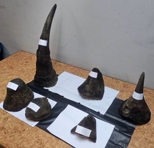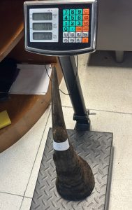 จากการตรวจค้นสัมภาระ พบของกลางเป็นนอแรด จำนวน 6 นอ น้ำหนักรวมประมาณ 11 กิโลกรัม คิดเป็นมูลค่ารวมกว่า 11 ล้านบาท ซึ่งเป็นซากสัตว์ป่าควบคุม ห้ามนำเข้า ส่งออก หรือนำผ่านราชอาณาจักรโดยไม่ได้รับอนุญาต