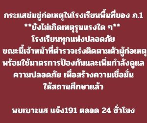 โดยได้สั่งการให้ ผู้บังคับการจังหวัดทุกจังหวัดและ ผู้บังคับการการสืบสวน ภ.1 ได้ส่งกำลังเจ้าหน้าที่ ชุดปฏิบัติการสืบสวนปราบปราม ออกไปตรวจตราดูแลความปลอดภัยให้กับ ประชาชนและโรงเรียน ตลอดจนนักเรียนต่างๆในพื้นที่ อย่างเต็มที่ทันทีเพื่อป้องกันเหตุร้ายที่อาจจะเกิดขึ้น โดยผู้ได้พบเบาะแสคนร้ายหรือต้องการความช่วยเหลือใดๆ ขอให้ติดต่อที่สถานีตำรวจใกล้บ้านของท่านหรือหมายเลขสายด่วน 191 ได้ตลอด 24 ชั่วโมง