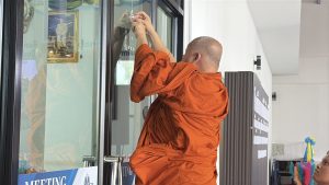 ในช่วงเช้าได้มีพิธีทำบุญเลี้ยงพระและเจริญพระพุทธมนต์ ก่อนประกอบพิธีเจิมอาคารเรียนหลังใหม่ ซึ่งเป็นอาคารเรียนสูง 3 ชั้น จำนวน 15 ห้องเรียน สร้างขึ้นเพื่อรองรับการจัดการเรียนการสอนของโรงเรียน ที่ปัจจุบันเปิดสอนตั้งแต่ระดับเตรียมอนุบาลจนถึงชั้นประถมศึกษาปีที่ 6 มีนักเรียนมากกว่า 1,000 คน