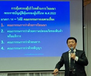 ในการนี้ สคบ.ได้เชิญ นายวรเทพ สกุลพิชัยรัตน์ อัยการพิเศษฝ่ายชี้ขาดคดีอัยการสูงสุด ๑. ในฐานะ ประธานกรรมการว่าด้วยโฆษณา สำนักงานคณะกรรมการคุ้มครองผู้บริโภค (สคบ) บรรยายในหัวข้อ “ บทบาท หน้าที่ และกลไกการดำเนินงานคุ้มครองผู้บริโภคด้านโฆษณา ”