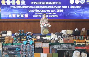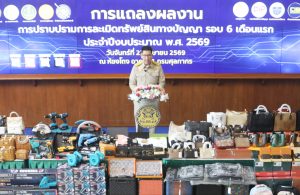 รัฐบาลผนึก “เศรษฐกิจ-ความมั่นคง-ยุติธรรม” ปราบสินค้าละเมิดฯ 6 เดือน จับ 332 คดี ยึดกว่า 1.3 ล้านชิ้น มูลค่าเสียหายทะลุ 2,300 ล้าน ยกระดับความเชื่อมั่นการค้า-การลงทุนไทย เสริมภาพลักษณ์ในเวทีโลก